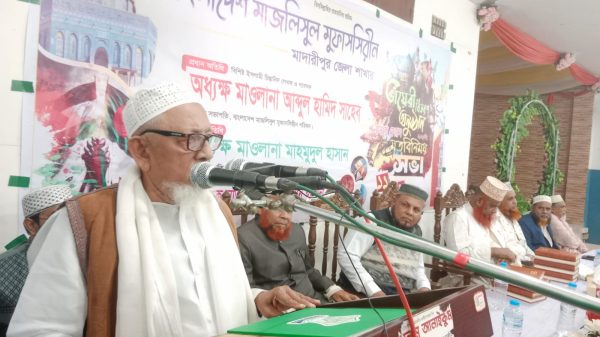 গোলাম আজম ইরাদ:বাংলাদেশ মাজলিসুল মুফাসসিরীন পরিষদের উদ্যোগে মাদারীপুরের ভূঁইয়া কমিউনিটি সেন্টারে অনুষ্ঠিত ডায়রি বিতরণ ও মতবিনিময় সভায় আলেম সমাজের ঐক্য ও কোরআনভিত্তিক নৈতিক শাসন প্রতিষ্ঠার ওপর গুরুত্বারোপ করেন সংগঠনের কেন্দ্রীয়